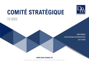 Les performances passées ne préjugent pas des rendements futurs. Les actions ne sont pas garanties et peuvent donc perdre de la valeur, notamment en raison des fluctuations des marchés. Dôm Finance fournit uniquement des informations sur ses produits. Ce document ne constitue ni une offre de souscription, ni un conseil personnalisé. Nous vous recommandons de vous informer soigneusement avant toute décision d’investissement. Toute souscription dans un compartiment doit se faire sur la base du prospectus actuellement en vigueur et des documents périodiques disponibles sur la base GECO de l’Autorité des Marchés Financiers ou sur simple demande auprès de Dôm Finance. Les instruments monétaires comportent moins de risques que les obligations, lesquelles comportent moins de risques que les actions. La diversification (sur différents marchés ou classes d’actifs) réduit le risque global d’un portefeuille. Les FCP qui privilégient les petites valeurs comportent plus de risques que ceux qui investissent dans de moyennes entreprises, lesquels comportent plus de risques que ceux privilégiant les grandes capitalisations. Les FCP dont le style de gestion est plus agressif comportent plus de risques que ceux dont le style de gestion est plus conservateur. Les FCP qui investissent sur des marchés moins liquides comportent plus de risques que ceux qui investissent sur des marchés plus développés. Les FCP qui investissent sur des marchés historiquement plus volatils comportent plus de risques que ceux qui investissent sur des marchés moins volatils. Les FCP, qui investissent dans des devises autres que leur propre devise de dénomination, comportent plus de risques que ceux qui investissent dans leur propre devise de dénomination. Les devises historiquement très volatiles comportent plus de risques que les devises plus stables. Les conséquences fiscales à l’égard de chaque actionnaire en ce qui concerne l’achat, la détention, la conversion, le rachat ou la vente des actions d’FCP dépendront selon le cas, des lois applicables auxquelles il est soumis. La loi et les usages fiscaux ainsi que les taux d’imposition peuvent faire l’objet de modifications. Les investisseurs sont invités à se rapprocher d’un conseiller fiscal pour toute question relative à la déclaration et à l’imposition en France. En aucun cas, la responsabilité de Dôm Finance ne pourra être engagée à la suite de tout litige entre l’investisseur et l’administration fiscale, notamment relatif à la déclaration ou à l’imposition en France ou dans tout autre état ou territoire. Dôm Finance fournit uniquement des informations sur ses produits. Par conséquent, les informations contenues dans ce site ne constituent ni une offre de souscription, ni un conseil personnalisé.